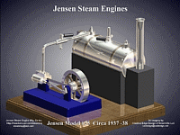 Jensen Steam Engines wishes to say thanks to our visitors by sharing two popular engines from the past. Two of the most highly prized vintage Jensen Steam Engines are the early model #25 and the model #10 with its unique crankshaft mounted generator.  We offer you these "Virtual" Steam Engines, with our compliments and our heart felt thanks to You, our visitor for making our site such a success.