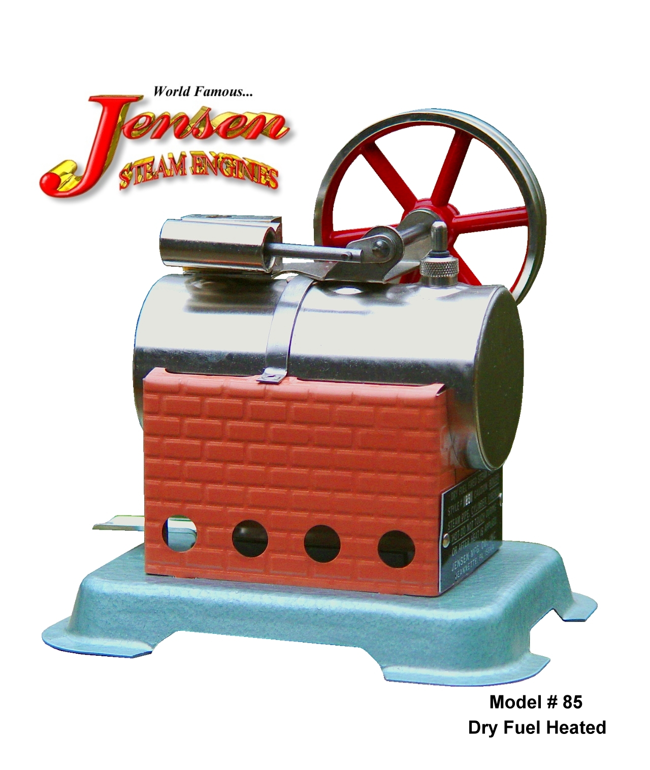 Model #85...The fastest RPM dry fueled engine we make, and with its 2-1/8 x 4-1/4 boiler, it is also the smallest. Although you can hold it in the palm of your hand, its speed and power are quite remarkable.
